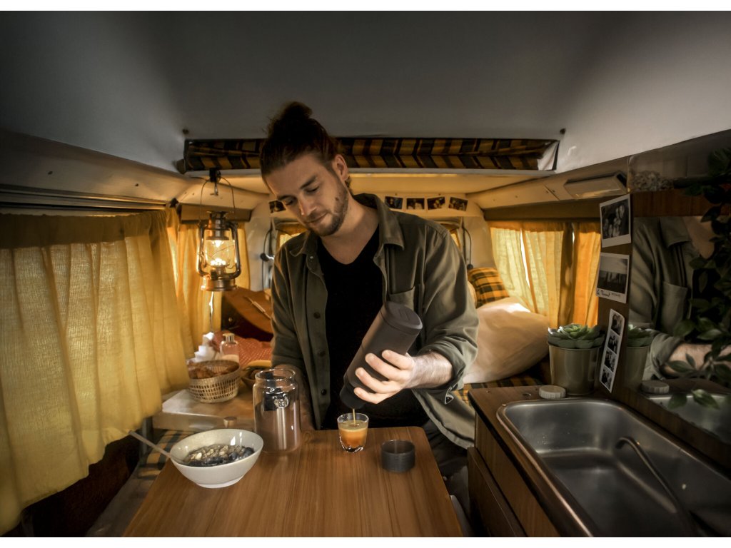 Pixapresso je kompatibilní jak s mletou kávou, tak s kapslemi Nespresso, takže si vybere opravdu každý. Díky baterii kávovar zvládne připravit až 5 šálků espressa na jedno nabití. Nabíjení probíhá přes USB‑C konektor a trvá přibližně 2,5 hodiny. Vše potřebné příslušenství – šálky, odměrku, trychtýř i kartáček – se vejde přímo do těla kávovaru, takže se nemusíte bát ztracených dílů ani poškození při cestování.