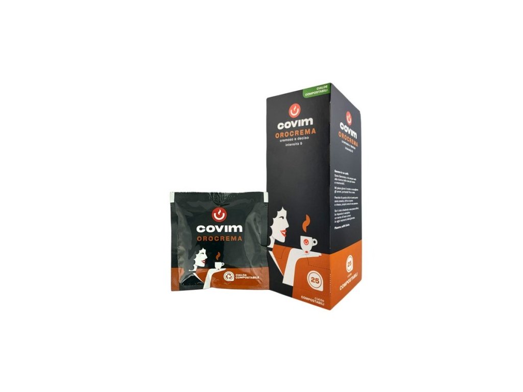Italská káva Covim Orocrema v E.S.E. tabletách. Covim Orocrema je kvalitní káva se silným aroma a plnou chutí se známkami čokolády a ořechů.