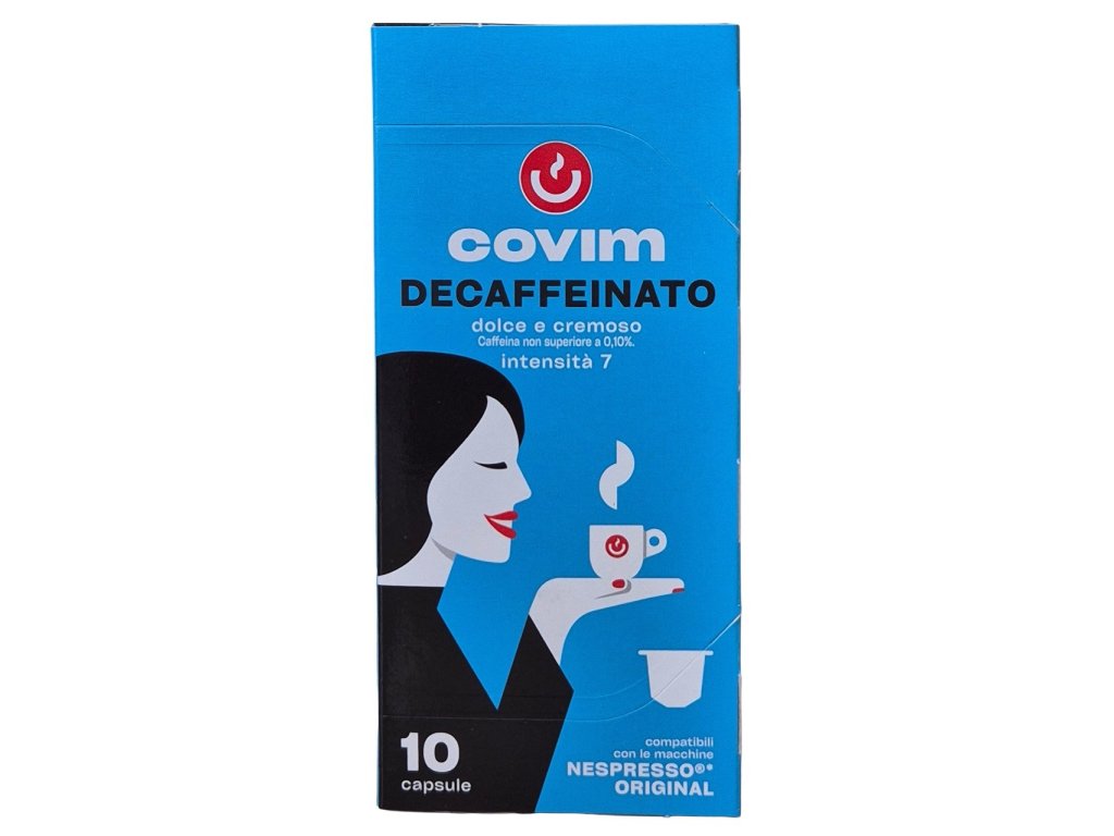 Kávové kapsle Covim Decaffeinato jsou vhodné pro kávovary Nespresso. Kapsle obsahují bezkofeinovou kávu - 100% Arabicu.