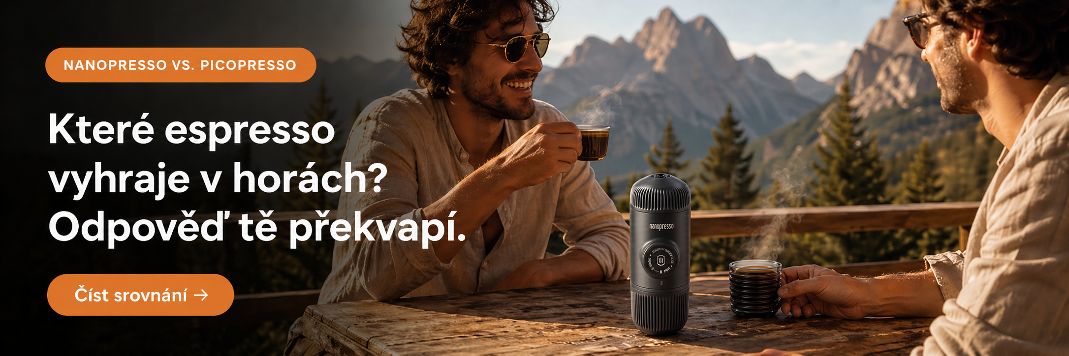 Potřebuji k Nanopresso nebo Picopresso elektřinu? Ne. Oba fungují čistě na manuální pohon — stačí horká voda z termosky a mletá káva nebo kapsle. Žádná baterie, žádný kabel.